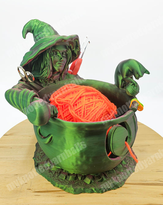 Witch Cauldron Yarn Bowl - Yarn Storage - High Quality Knitting or Crochet Bowl - Halloween Witches Spooky Cat Potion Gothic Yarn Organizer