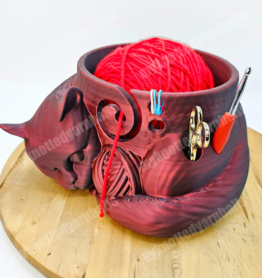 Large Cat Yarn Bowl - Yarn Storage and Accessory Holder - High Quality Knitting or Crochet Bowl - Cute Kitty Cat